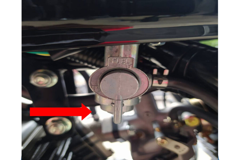 Adjust the fuel tap lever from tap position 1 to tap position 2, the remaining oil in the tank will go down to feed the carburetor. The remaining fuel level in tap 2 can run for approximately 10-15 kilometers.