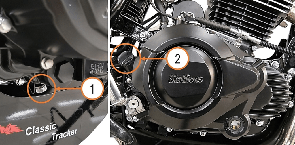 - Place the oil tray under the engine, Then remove the oil drain bolt ①, wait until the engine oil drains completely and tighten oil bolt back again.