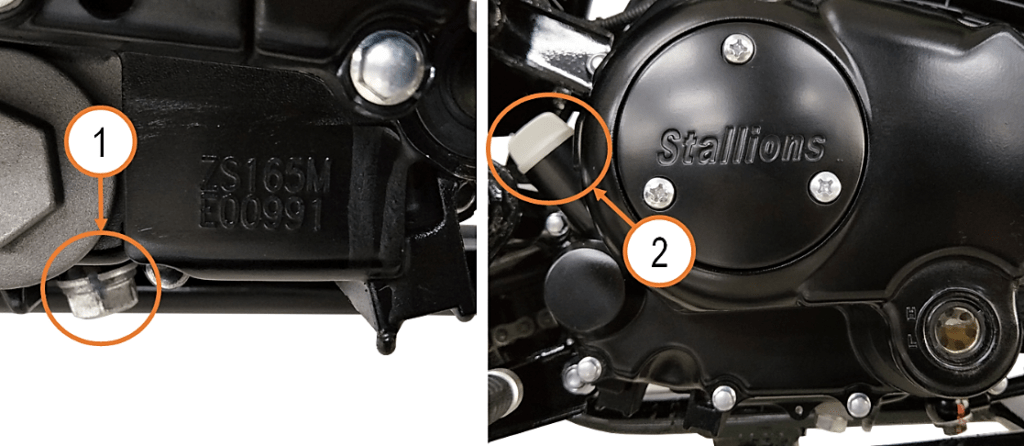 - Place the oil tray under the engine, Then remove the oil drain bolt ①, wait until the engine oil drains completely and tighten oil bolt back again.