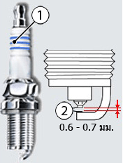 The standard value of the spark plug gap distance is 0.6 – 0.7 mm.